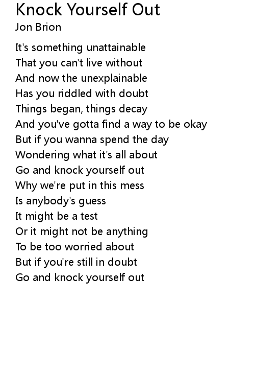 | Go and knock yourself out | |