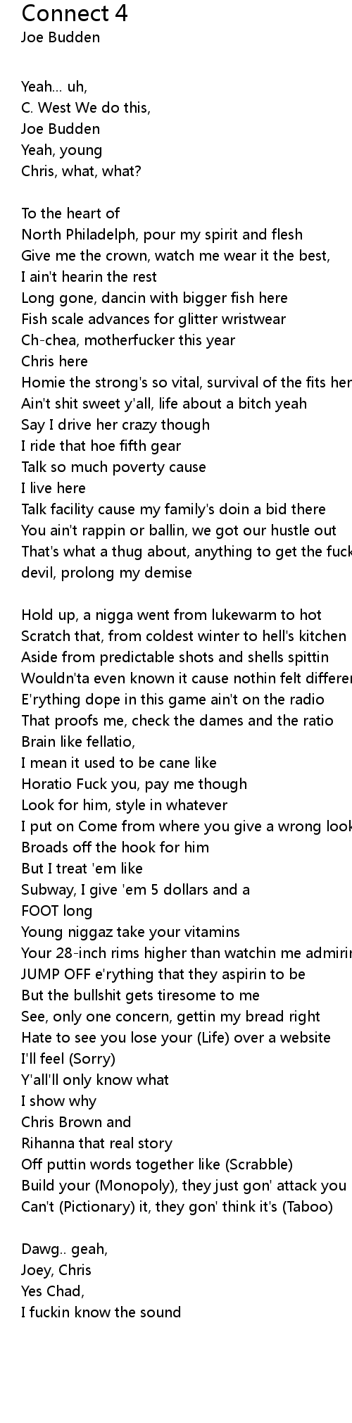When you get more, they can't (Connect) the (Four) [Outro: Joe Budden]