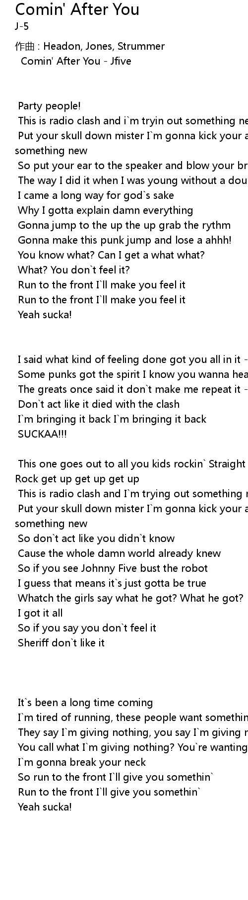 | Comin' After You - Jfive | |