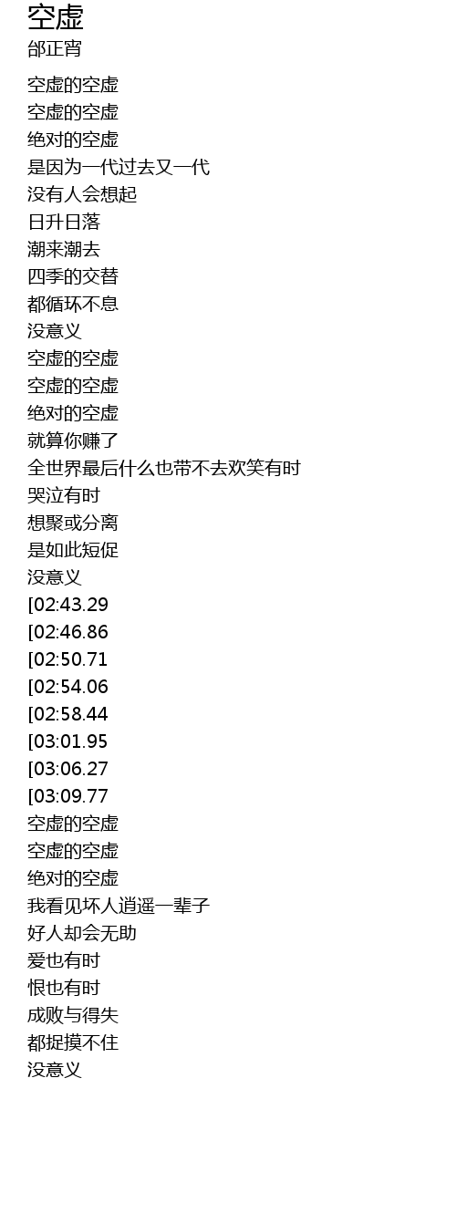| [00:18.67] | 空虚的空虚 |
