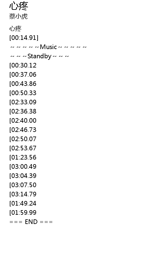 | [03:59.73][03:14.79][01:38.99] | ~~~~~Music~~~~~ |