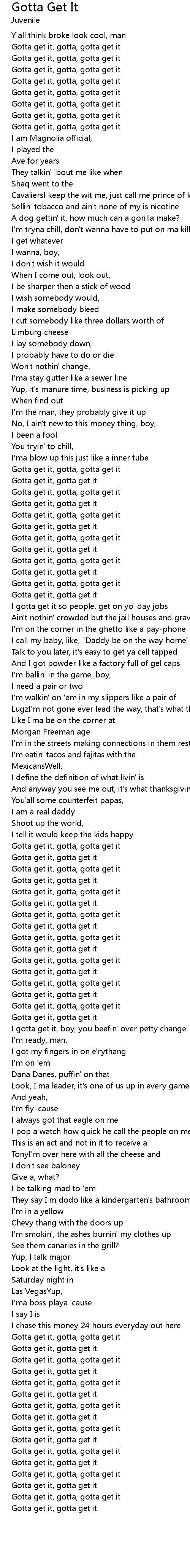 Gotta get it, gotta get it |