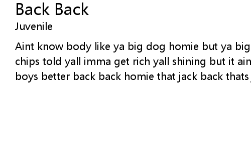 | Aint know body like ya big dog homie but ya big dog homie dont quit about my chips told yall imma get rich yall shining but it aint like thischours x2you boys better back back homie that jack back thats jack back thats juv |
