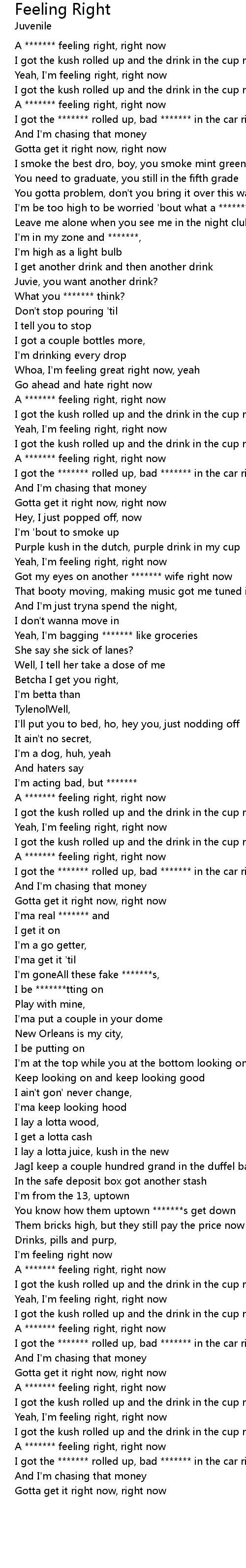 Yeah, I'm feeling right, right now |
