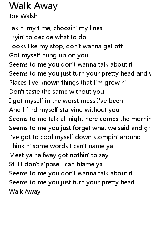 Seems to me you just turn your pretty head and walk away |