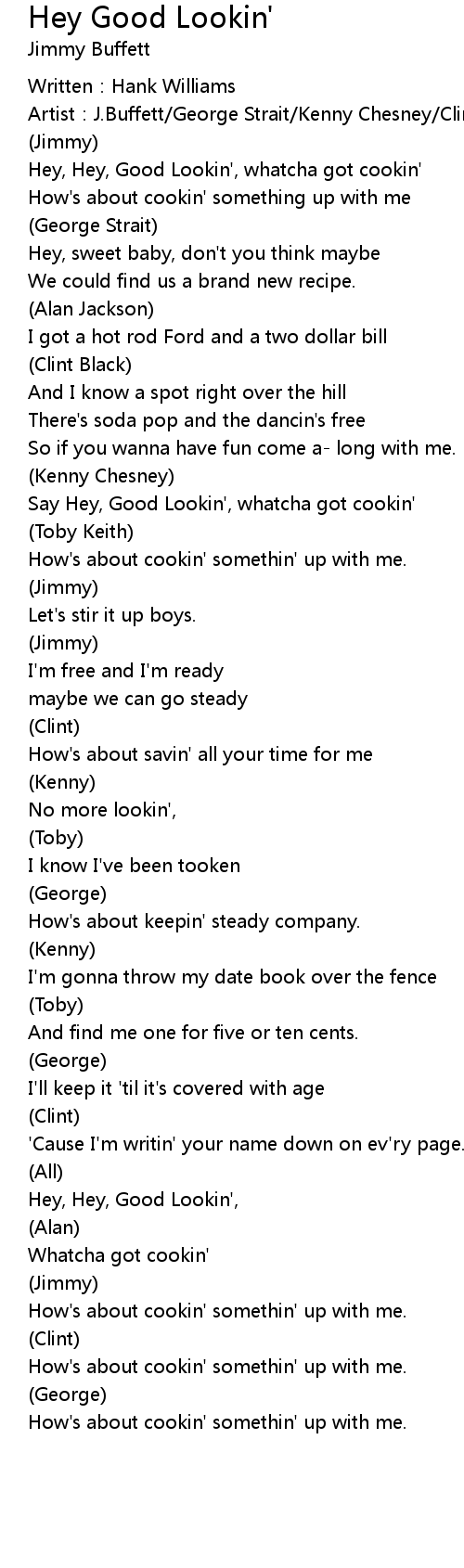 | Hey, Hey, Good Lookin', whatcha got cookin' | |
