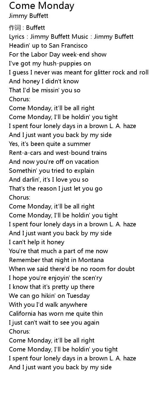 | 歌曲 | Come Monday |