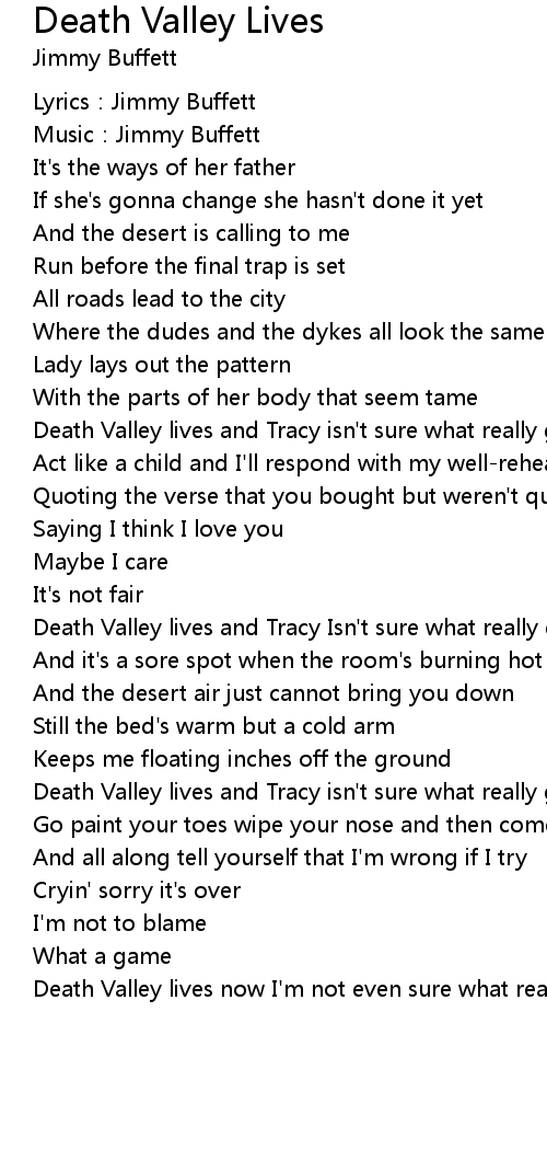 | Death Valley lives and Tracy Isn' t sure what really gives | |