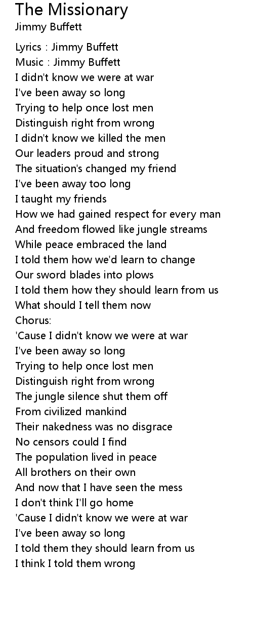 | Lyrics: Jimmy Buffett | |