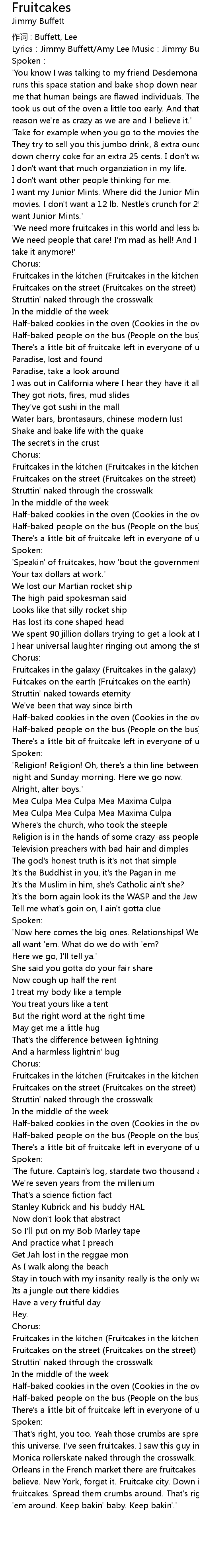 | Lyrics:Jimmy Buffett/Amy Lee Music:Jimmy Buffett/Amy Lee | |