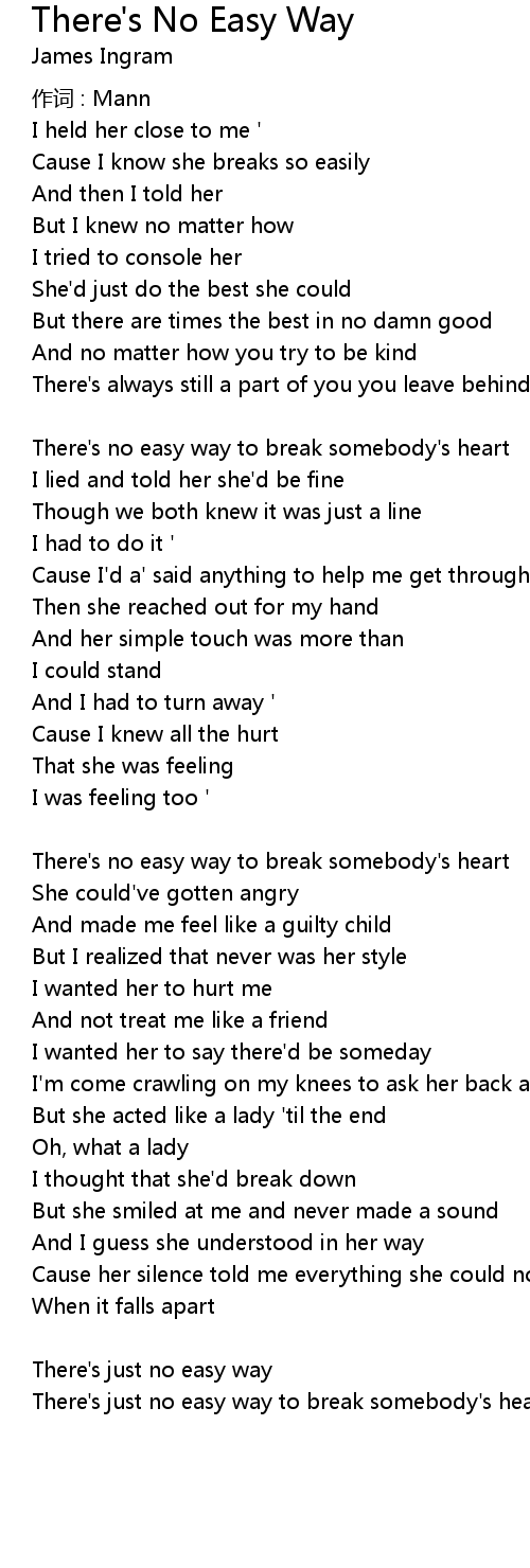 | There' s no easy way to break somebody' s heart | |