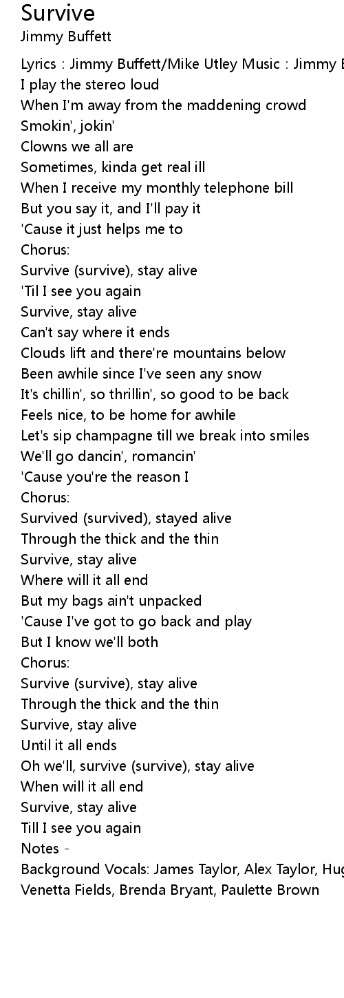 | Oh we' ll, survive survive, stay alive | |