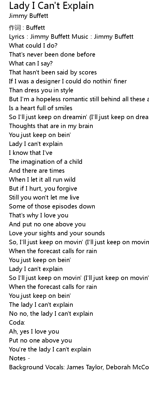 | Lyrics:Jimmy Buffett Music:Jimmy Buffett | |