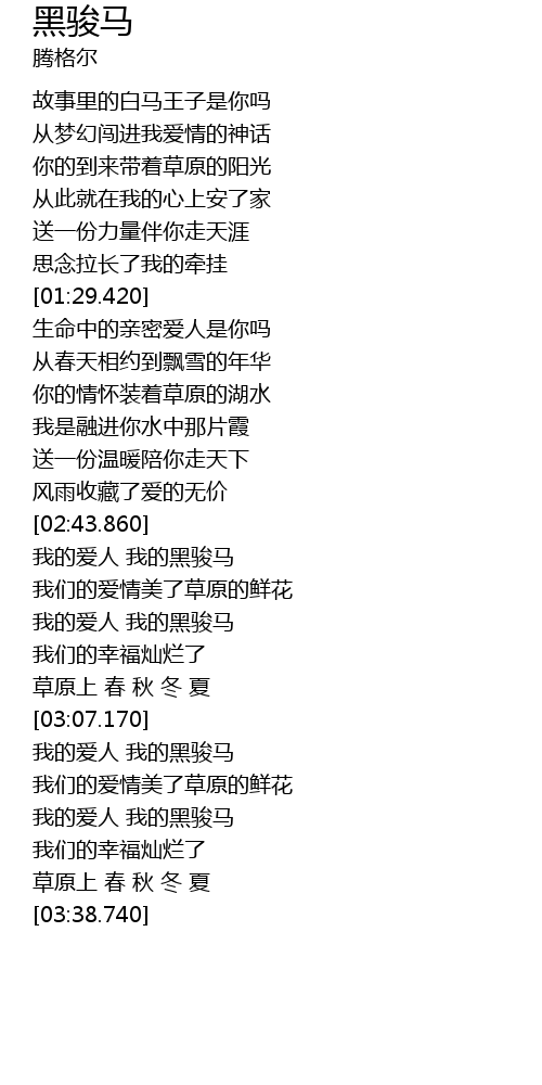 | [03:17.800] | 我的爱人 我的黑骏马 |