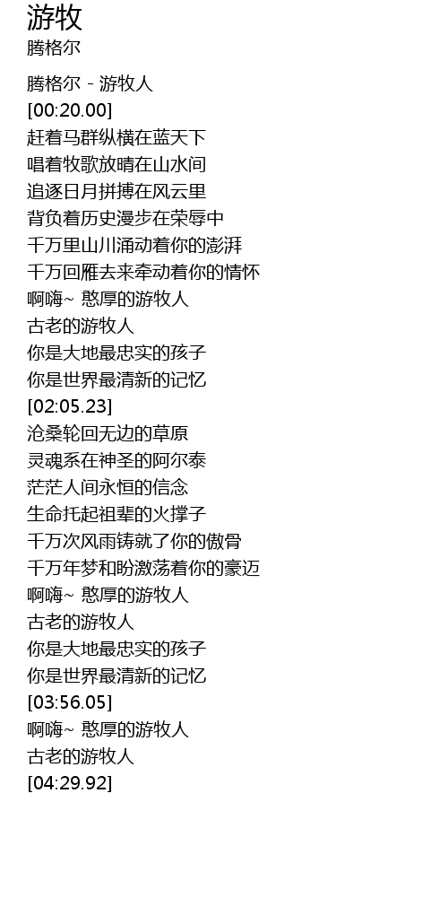 | [03:16.34] | 啊嗨~ 憨厚的游牧人 |