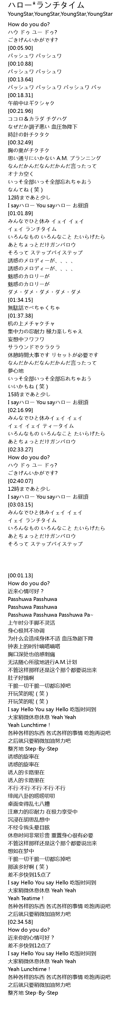 | [00:57.44] | I sayハロー You sayハロー お昼頃 |