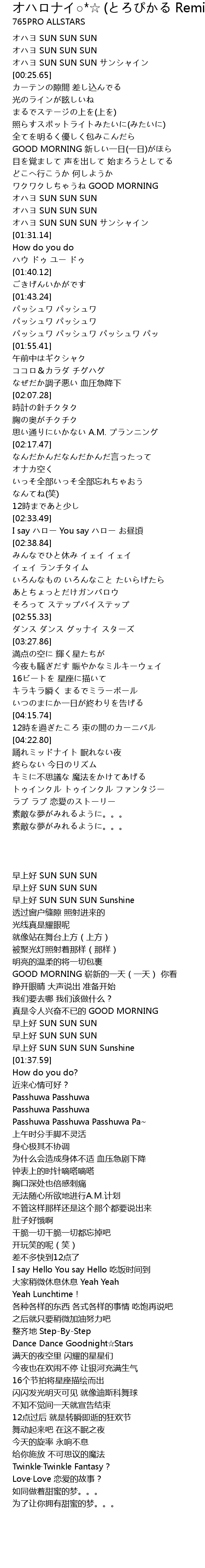 | [01:28.49] | オハヨ SUN SUN SUN サンシャイン |