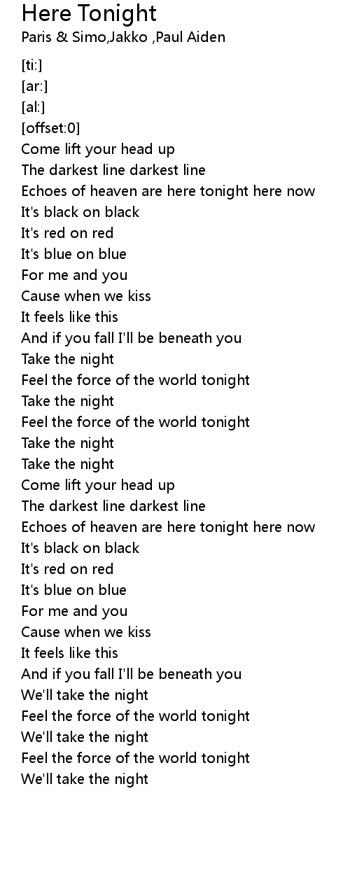 Echoes of heaven are here tonight here now |