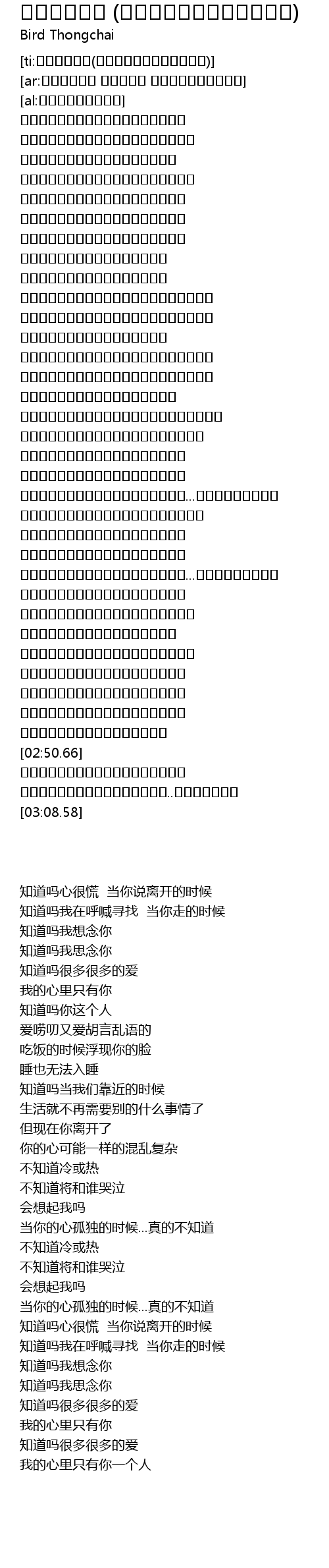 | [02:10.03] | เมื่อใจเปลี่ยวเหงา...ไม่รู้เลย |