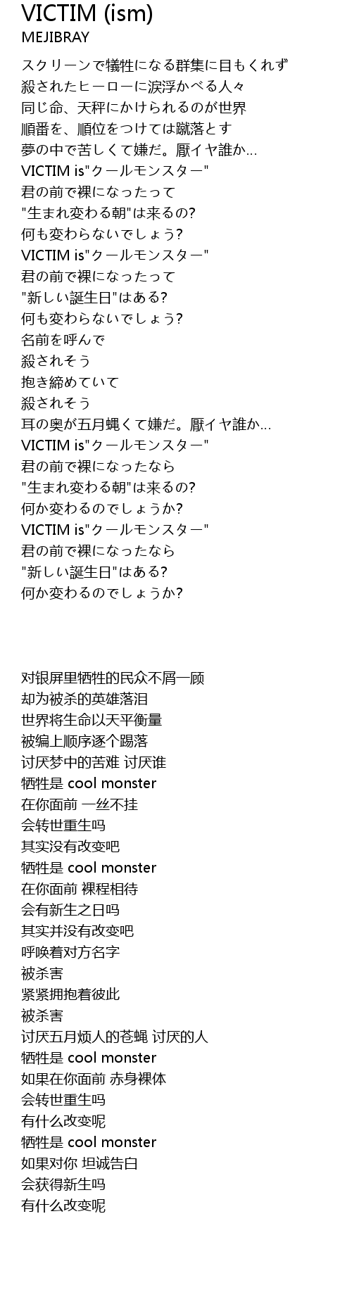 | [02:27.09] | VICTIM is"クールモンスター" |