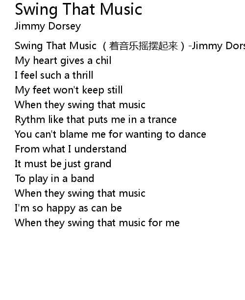 | [00:00.00] | Swing That Music zhe yin yue yao bai qi lai Jimmy Dorsey |