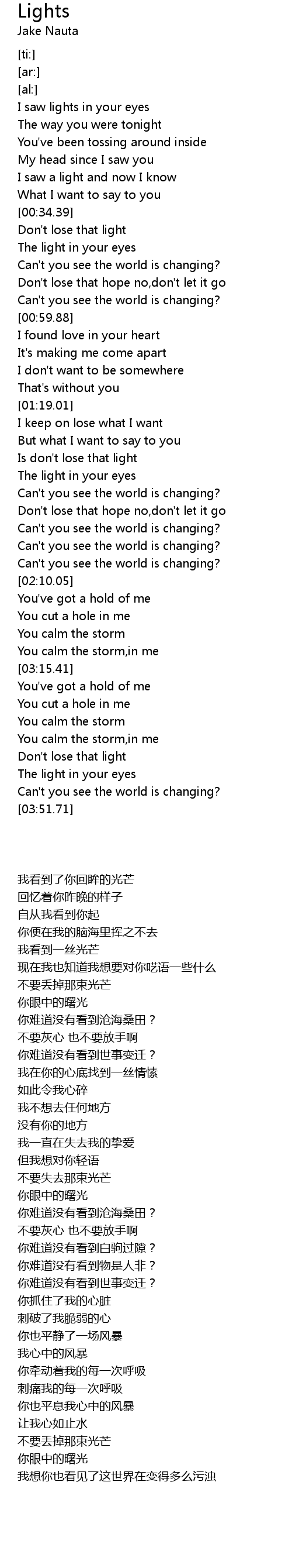 I saw lights in your eyes |