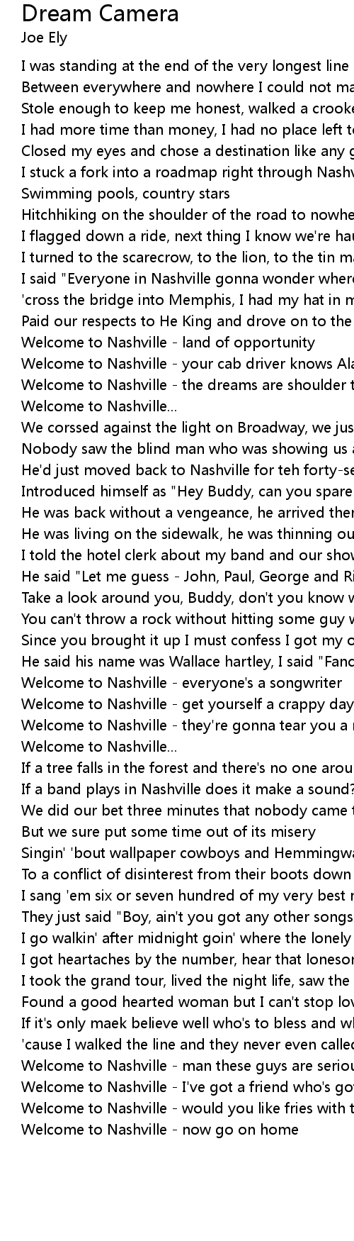 | Welcome to Nashville - the dreams are shoulder to shoulder | |