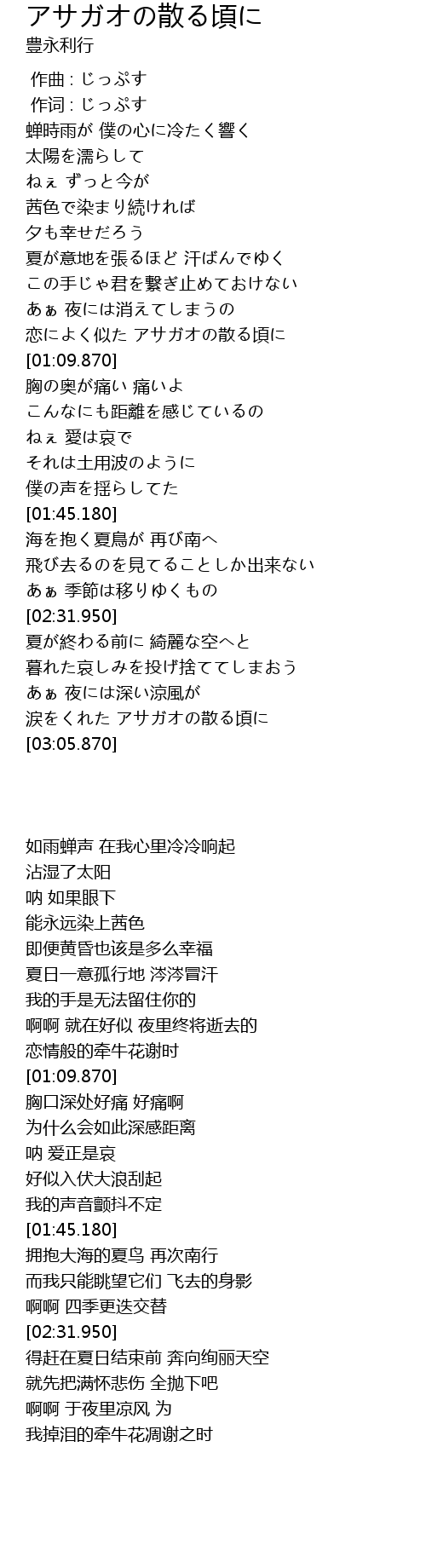 | [00:57.700] | 恋によく似た アサガオの散る頃に |