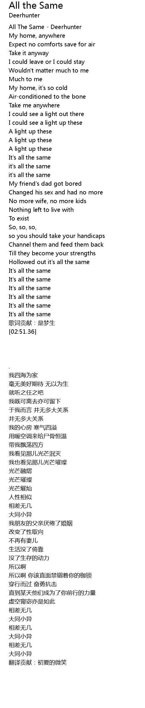 | [00:10.59] | All The Same - Deerhunter |