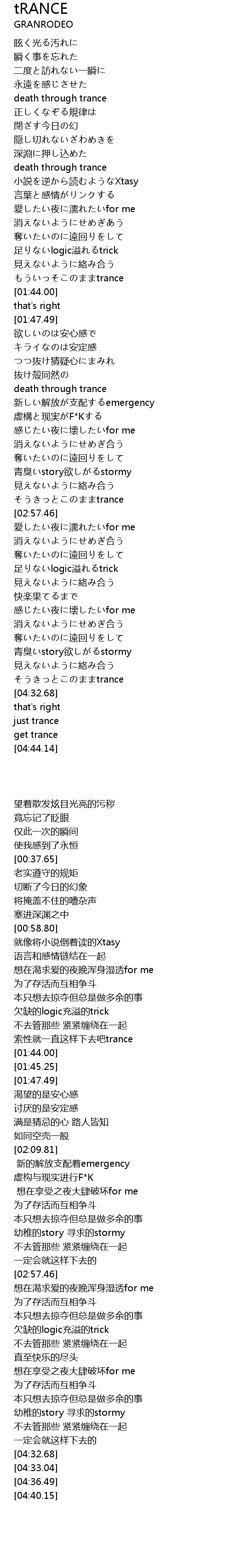 | [01:38.79] | 索性就一直这样下去吧trance |