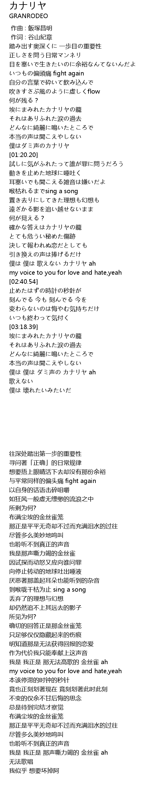 | [02:20.43] | 我是 我正是 那无法高歌的 金丝雀 ah |