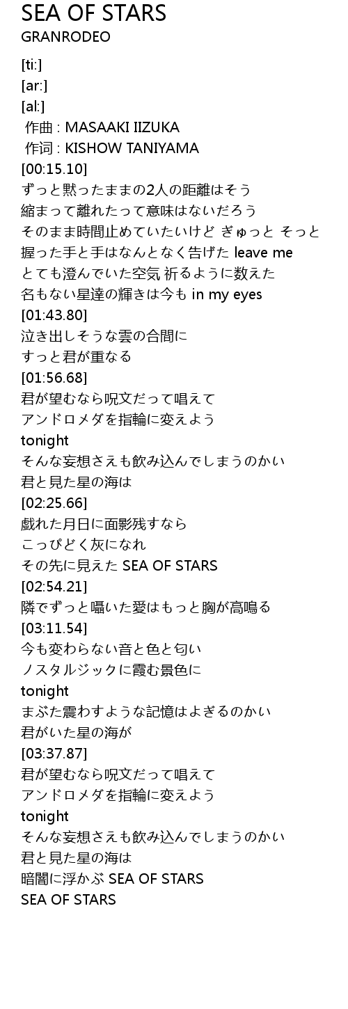 | [04:38.55] | 暗闇に浮かぶ SEA OF STARS |
