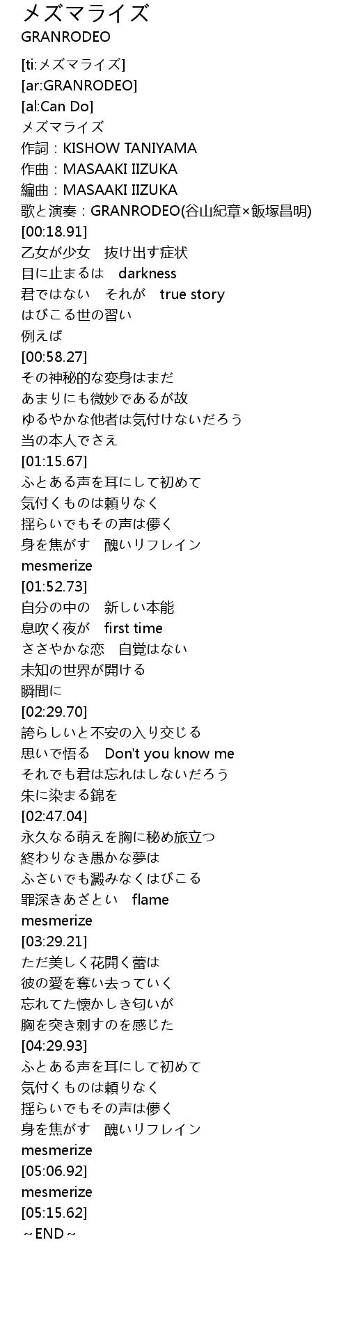 | [00:14.26] | 歌と演奏:GRANRODEO(谷山紀章×飯塚昌明) |