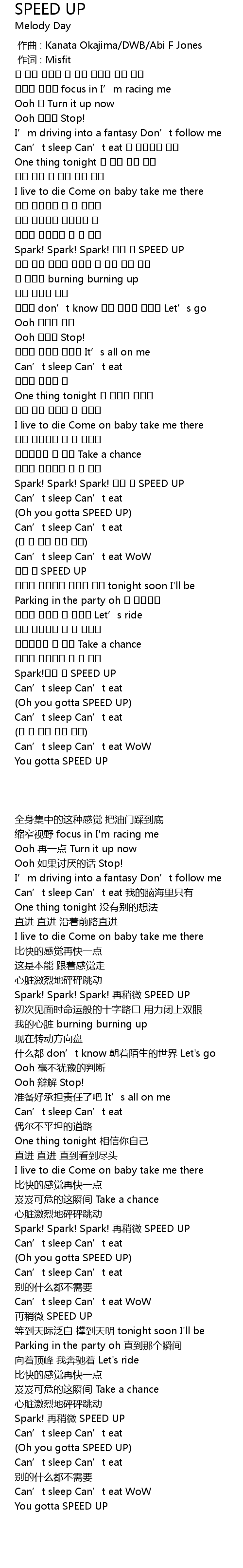 | [02:50.330] | Spark! 再稍微 SPEED UP |