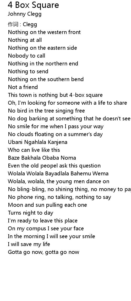 | 歌曲 | 4 Box Square |