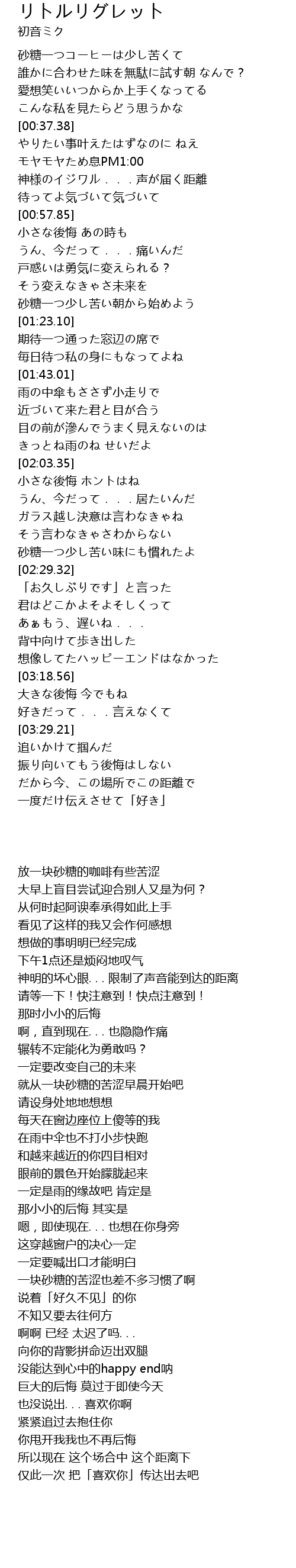 | [01:19.31] | 砂糖一つ少し苦い朝から始めよう |