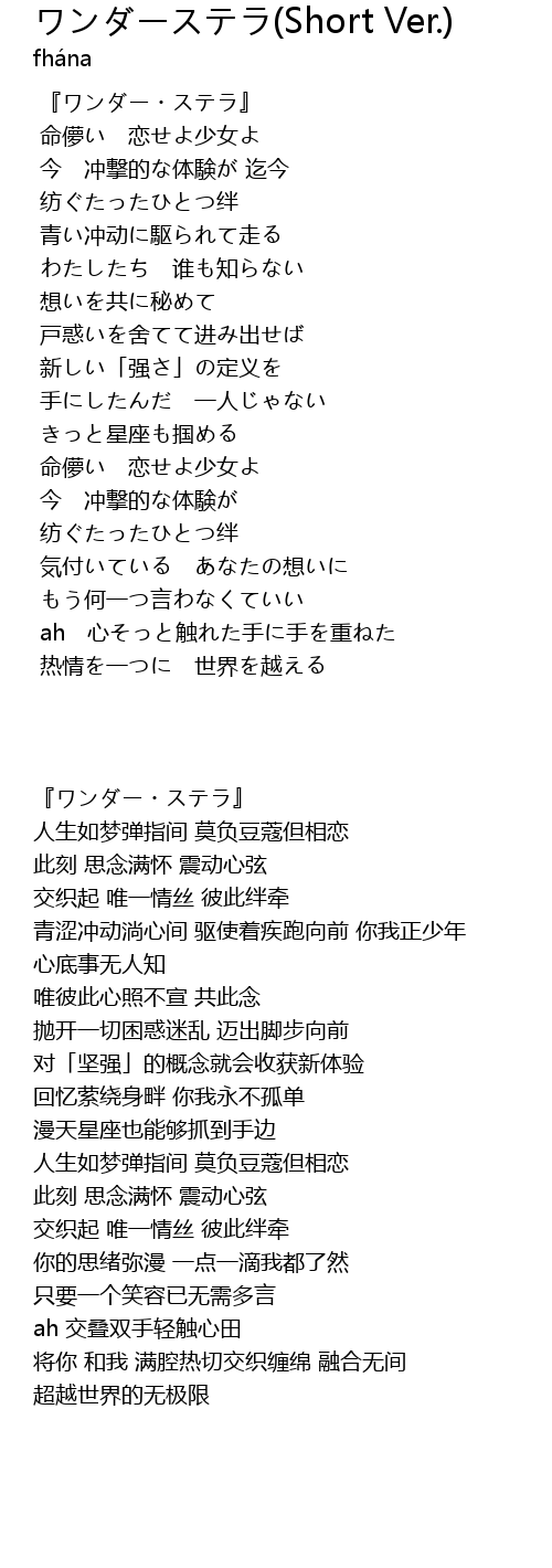 | [00:00.00] | 『ワンダー・ステラ』 |