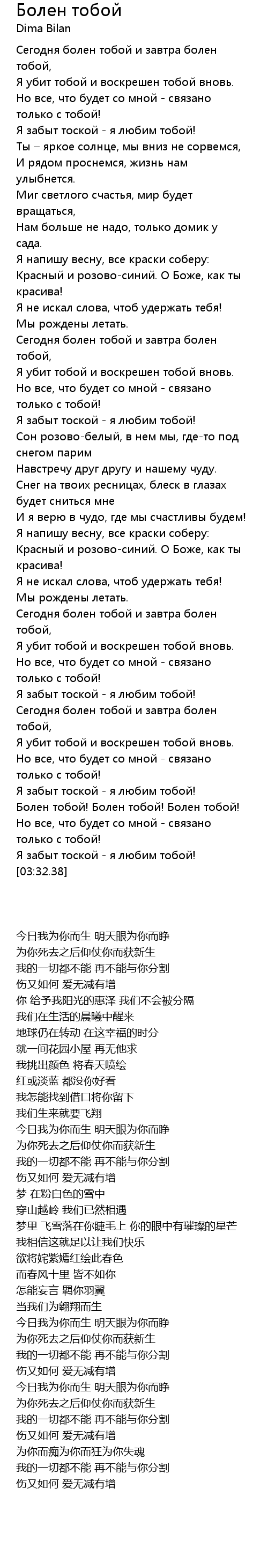 | [03:14.46] | Болен тобой! Болен тобой! Болен тобой! |