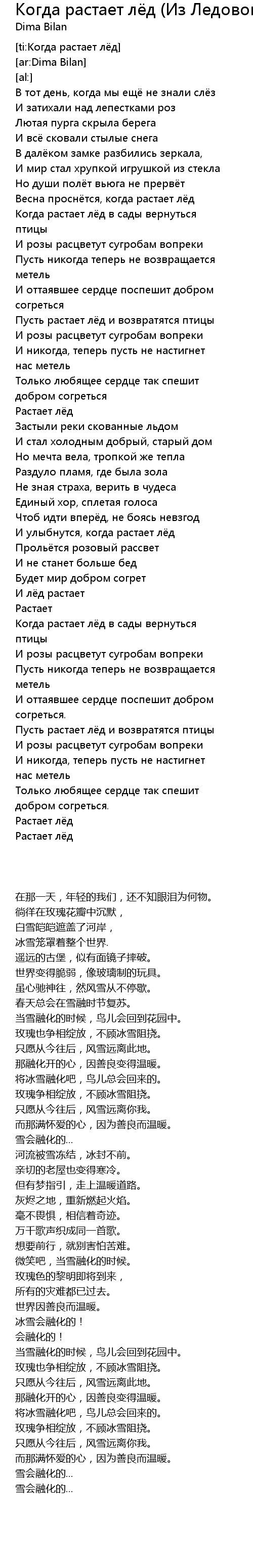 | 歌曲 | Когда растает лёд (Из Ледового Шоу "Снежный Король") |