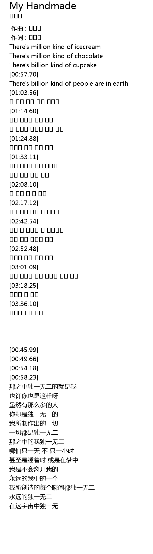 | [01:46.49] | 一切都是独一无二 |