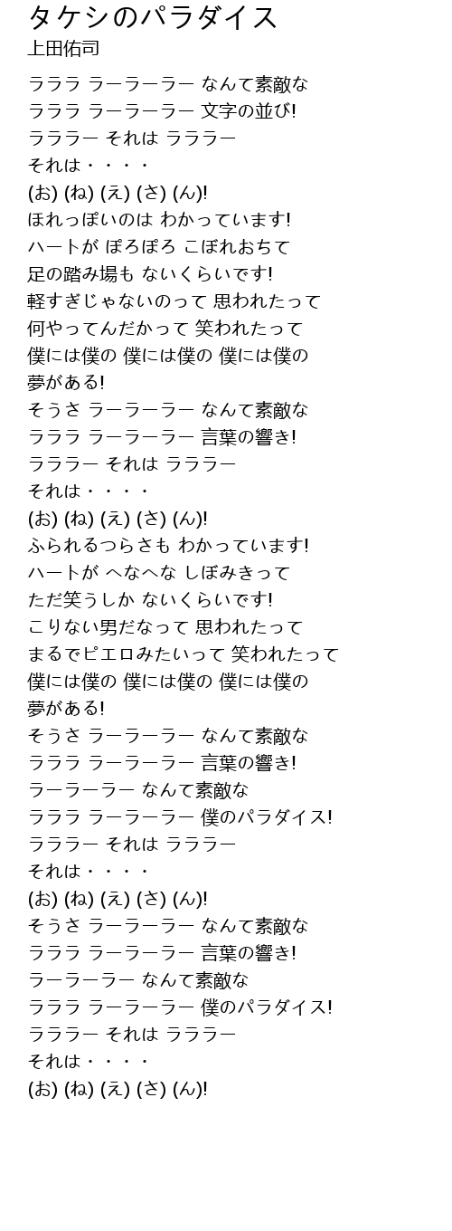 | 歌曲 | タケシのパラダイス |