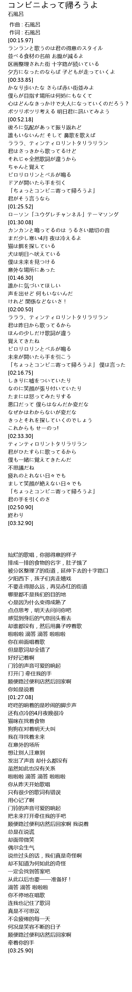 | [02:13.34] | 顺便路过便利店然后回家啊 我说着 |
