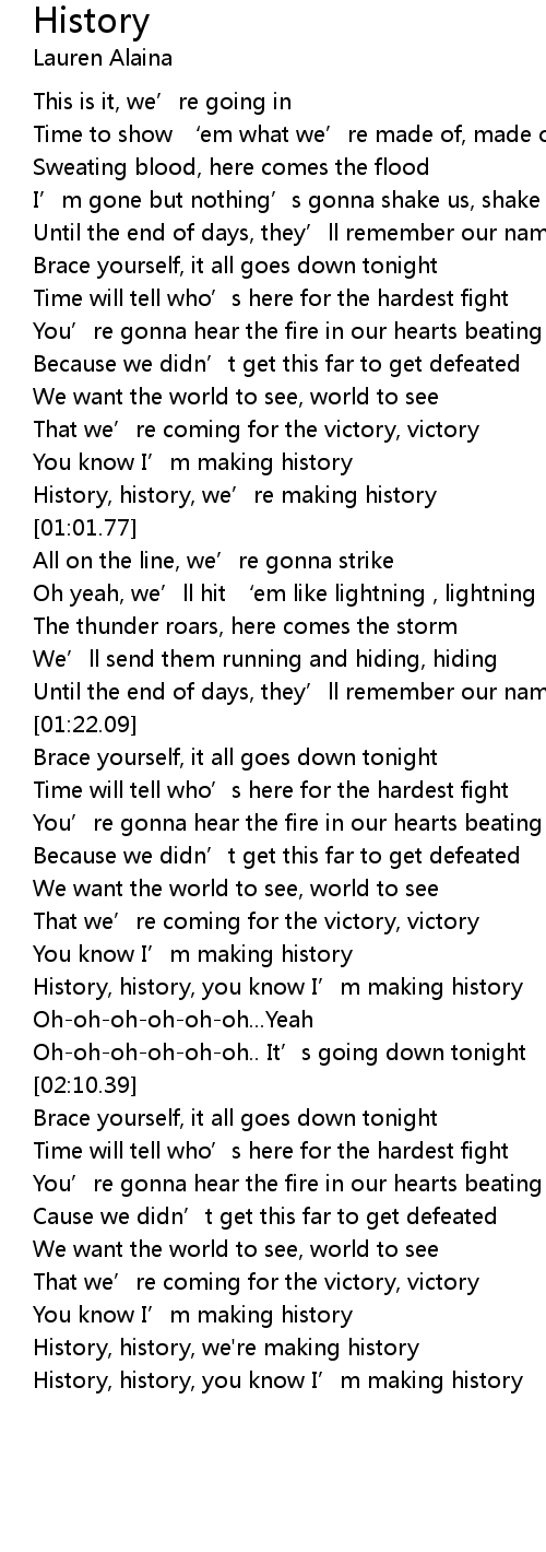 | [02:37.73] | History, history, we're making history |