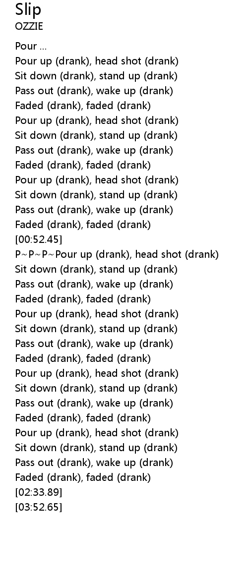 | [02:01.70] | Pass out (drank), wake up (drank) |