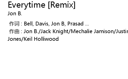 | [00:00.000] | 作词 : Bell, Davis, Jon B, Prasad ... |
