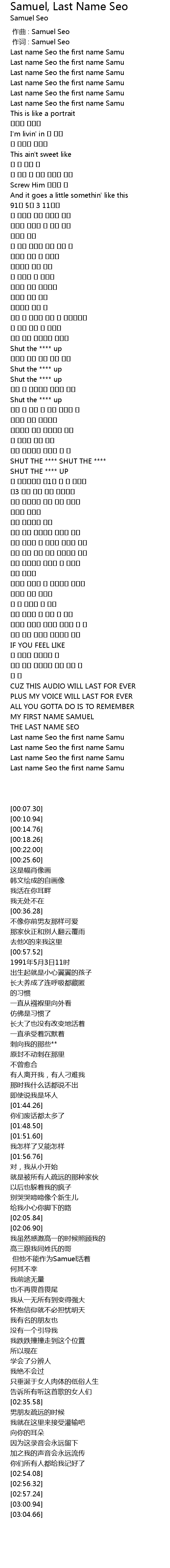 | [02:54.08] | MY FIRST NAME SAMUEL |