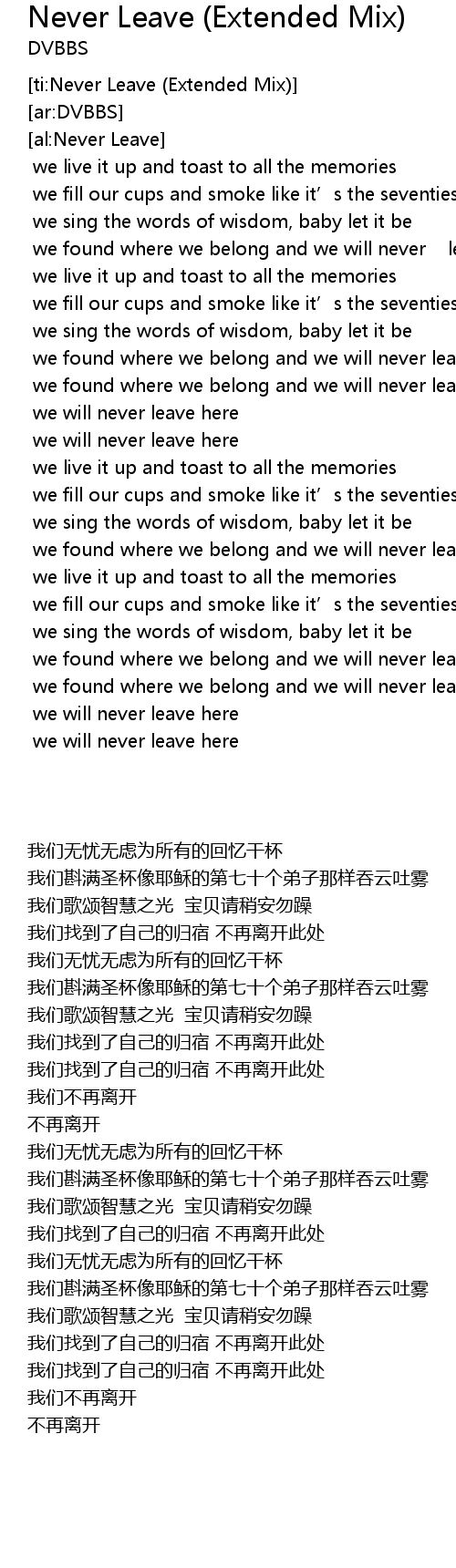 | [ti:Never Leave (Extended Mix)] | |
