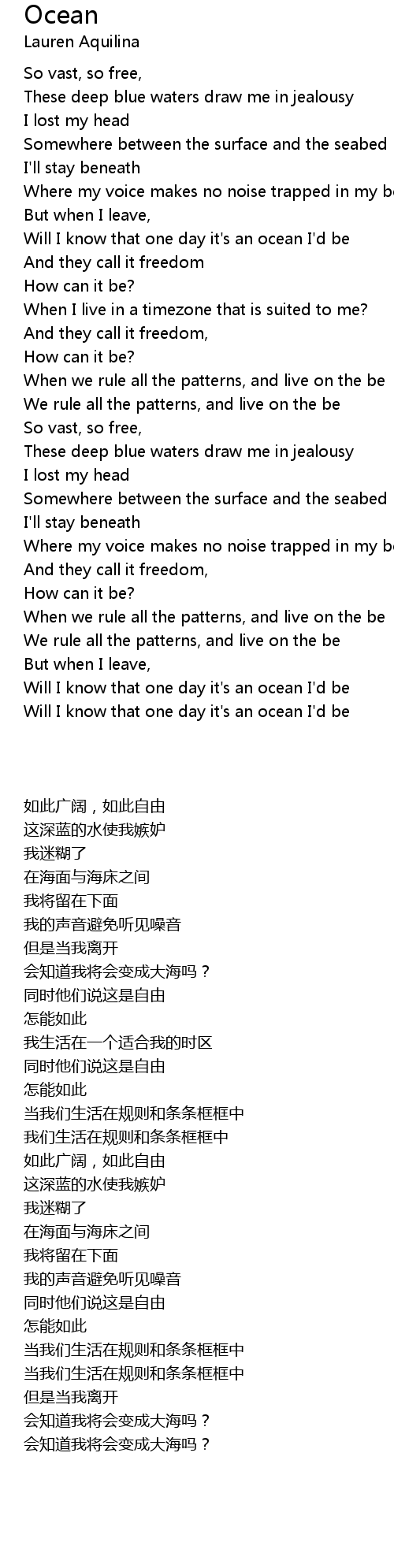 Will I know that one day it's an ocean I'd be |