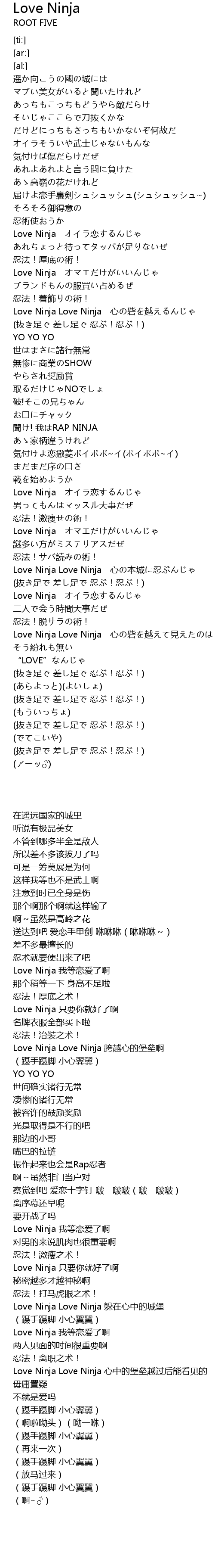 | [01:31.94] | Love Ninja |