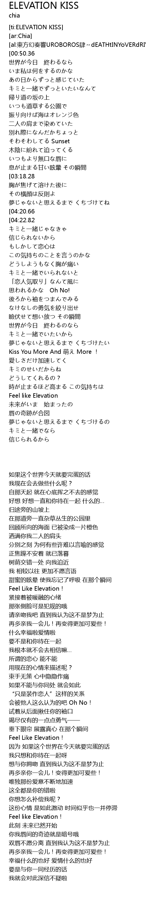 | [01:44.67][03:18.28] | Feel Like Elevation |